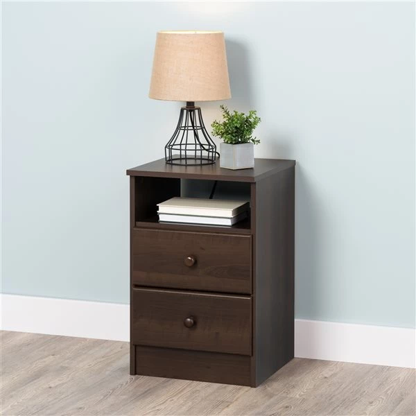 Have all you need close at hand with this nightstand. Profiled drawer fronts and solid wood knobs help provide a timeless look. Use on its own or pair it with another one. The 2 drawers discreetly tuck away everything you want out of sight, while the open shelf is perfect for stashing your favourite books, blankets or knickknacks.
