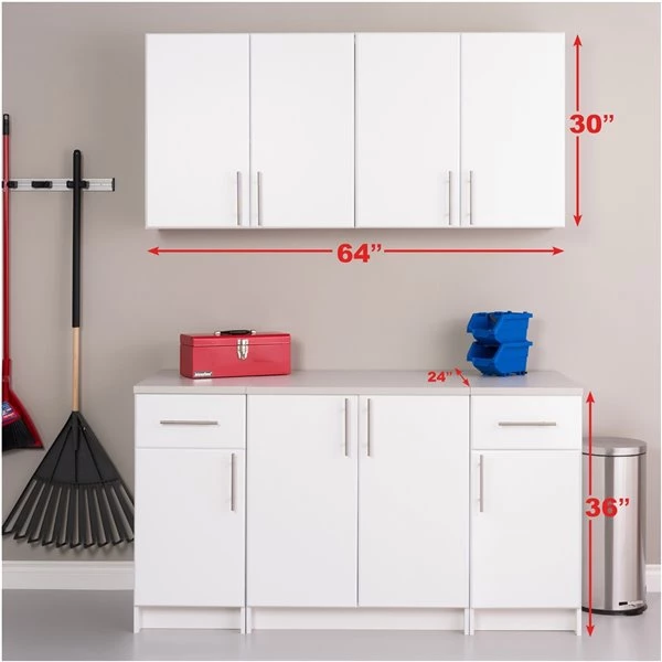 The Elite Collection by Prepac(R) is a great choice for any kitchen, entryway, laundry room, or anywhere else you may need some extra storage space. Elite cabinets are constructed using laminated composite wood and feature stylish brushed metal handles and adjustable hinges. MDF doors with profiled (rounded) edges add a level of sophistication to all the cabinets. Modern, elegant and practical, the Elite Collection by Prepac(R) brings functionality without compromising on style. Add other cabinets from the ultra-versatile Elite Collection by Prepac(R) to create a storage system to convert any cluttered room into an organized space. Set B Includes: