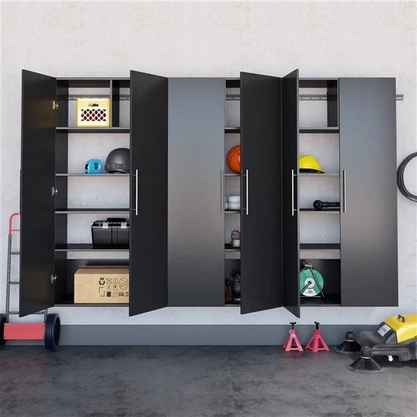 The HangUps storage cabinet collection offers versatility for your ever-changing storage needs in the garage, laundry room, office or workshop. The cabinets mount securely to the wall with a heavy-duty metal rail and hook system. The wall mounted feature ensures easy cleaning beneath the cabinets and protects your stored items from water and dirt. The HangUps collection is constructed using laminated composite wood and features metal handles and adjustable hinges.