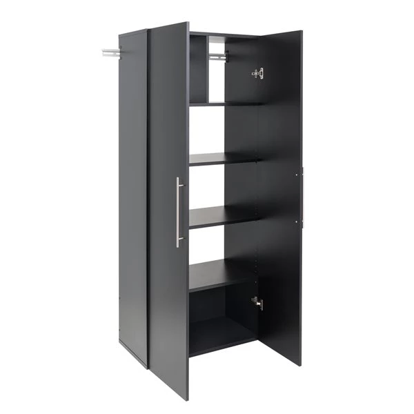 The HangUps storage cabinet collection offers versatility for your ever-changing storage needs in the garage, laundry room, office or workshop. The cabinets mount securely to the wall with a heavy-duty metal rail and hook system. The wall mounted feature ensures easy cleaning beneath the cabinets and protects your stored items from water and dirt. The HangUps collection is constructed using laminated composite wood and features metal handles and adjustable hinges.