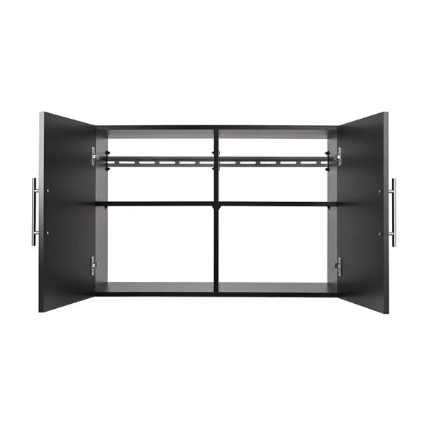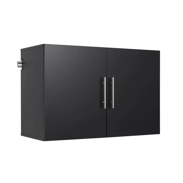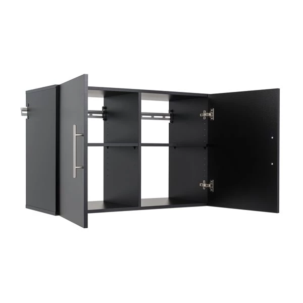 The HangUps upper cabinet offers versatility for your ever-changing storage needs in the garage, laundry room, office or workshop. The upper cabinet mounts securely to the wall with a heavy-duty metal rail and hook system. The wall mounted feature ensures easy cleaning beneath the cabinets and protects your stored items from water and dirt. The HangUps collection is constructed using laminated composite wood and features metal handles and adjustable hinges.