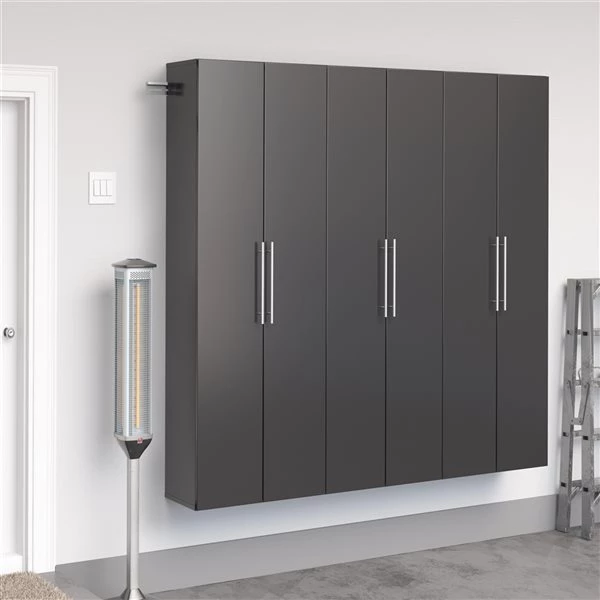 The HangUps storage cabinet collection offers versatility for your ever-changing storage needs in the garage, laundry room, office or workshop. The cabinets mount securely to the wall with a heavy-duty metal rail and hook system. The wall mounted feature ensures easy cleaning beneath the cabinets and protects your stored items from water and dirt. The HangUps collection is constructed using laminated composite wood and features metal handles and adjustable hinges.