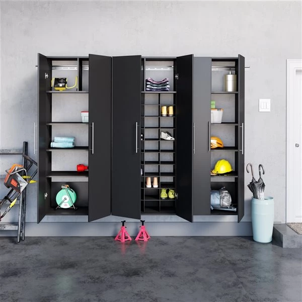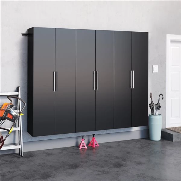 The HangUps storage cabinet collection offers versatility for your ever-changing storage needs in the garage, laundry room, office or workshop. The cabinets mount securely to the wall with a heavy-duty metal rail and hook system. The wall mounted feature ensures easy cleaning beneath the cabinets and protects your stored items from water and dirt. The HangUps collection is constructed using laminated composite wood and features metal handles and adjustable hinges.