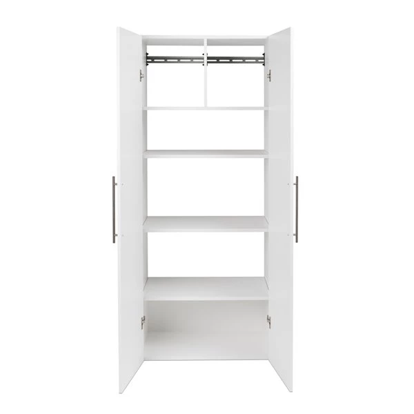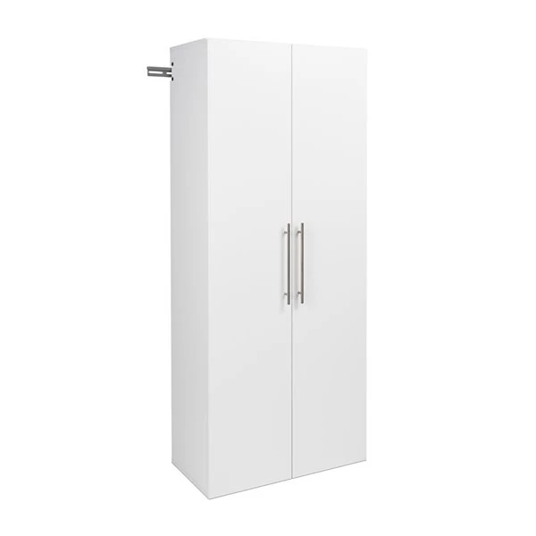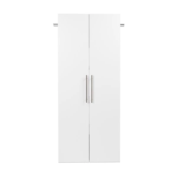 The HangUps 30″ Large Storage Cabinet offers versatility for your ever changing storage needs in the garage, laundry room, office or workshop. This cabinet mounts securely to the wall with a heavy duty metal rail and hook system. The wall mounted feature ensures easy cleaning beneath the cabinets and protects your stored items from water & dirt. The HangUps Collection by Prepac(R) is constructed using laminated composite wood and features metal handles and adjustable hinges. This product ships ready-to-assemble and includes all hanging rails and fastening bolts. Add other cabinets from our HangUps Collection by Prepac(R) to create a storage system to convert any cluttered room into an organized space.