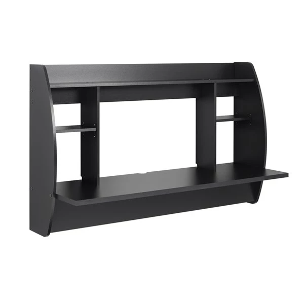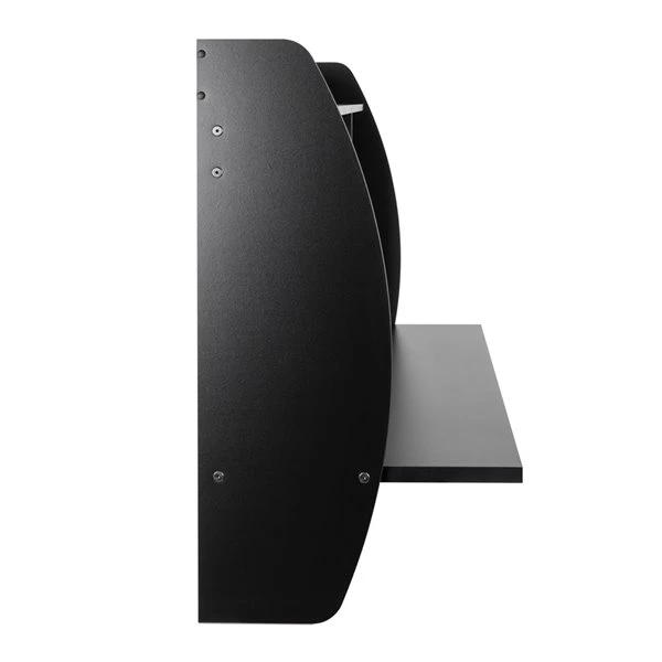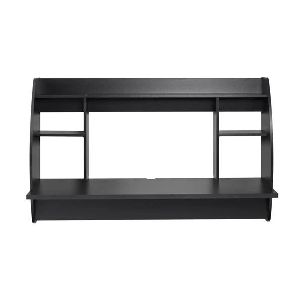 Working or studying at home and tired of using your dining table? The wide floating desk by Prepac gives you everything you need to set up your work-from-home space. The centre compartment is large enough for a 32-inch monitor and there are cubbies with shelves on either side of books, binders, pens and other essentials. A top shelf running the length of the desk is a great place for mini speakers or decorative items. The large, black desktop surface also means there’s more room to prop open a book or lay out papers. A semicircular opening at the back of the desktop for wire management leads to a hidden compartment to store your power bar and keep cords organized. Whether positioned as a standing or sitting desk, it is easy to mount using an innovative metal rail system. You just need to locate 4 wooden wall studs for mounting. Manufactured in Canada from nontoxic, laminated composite woods and meets all North American safety standards.