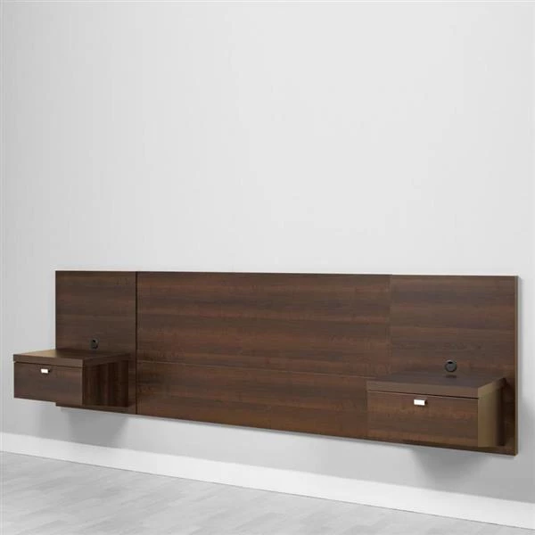 This contemporary headboard by Prepac® features high-quality construction and two built-in night tables. Includes a hanging rail system. Pair with pieces from the same collection for the complete look.