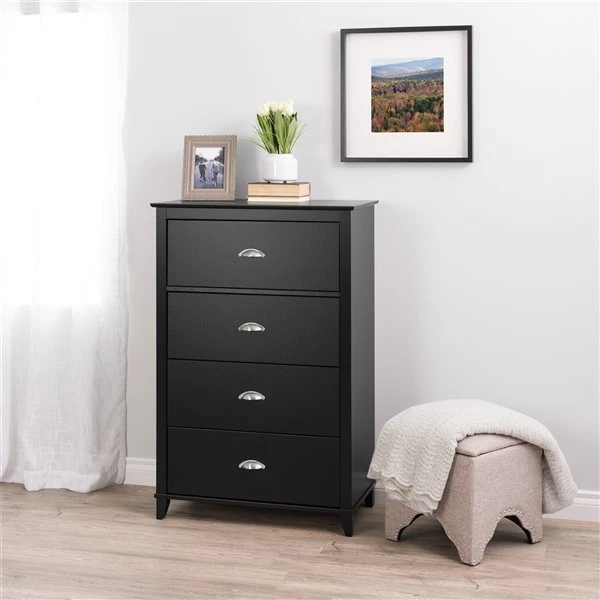 Large drawers provide ample space for all your clothes while maintaining a streamlined silhouette. Tapered, solid wood legs lift this 4-drawer chest up off the floor, providing a chic, functional addition to any bedroom. This classic, stylish design will provide a timeless look in your bedroom or guestroom. Style this dresser on its own, or combine it with other products in our Yaletown collection.